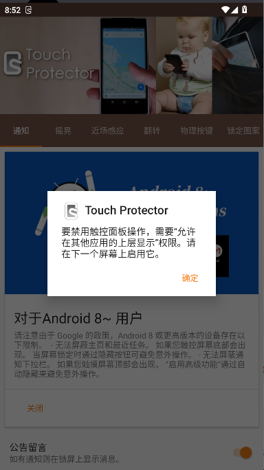 Touch Protector汉化版是一款专为安卓用户打造的智能屏幕锁定工具,也被广泛称为“禁用触摸软件”。它能一键禁用设备的触控功能,有效防止误触、水滴干扰或意外操作,在多种生活场景中发挥关键作用——比如在浴室使用防水手机观看视频、骑行时将手机作为导航设备,甚至只是将手机放入口袋,都能避免因误触导致的电量浪费或操作中断。该应用不仅支持全面禁用触控,还提供多种灵活的解锁方式和个性化设置,兼顾实用性与安全性,是提升日常使用体验的必备小工具。