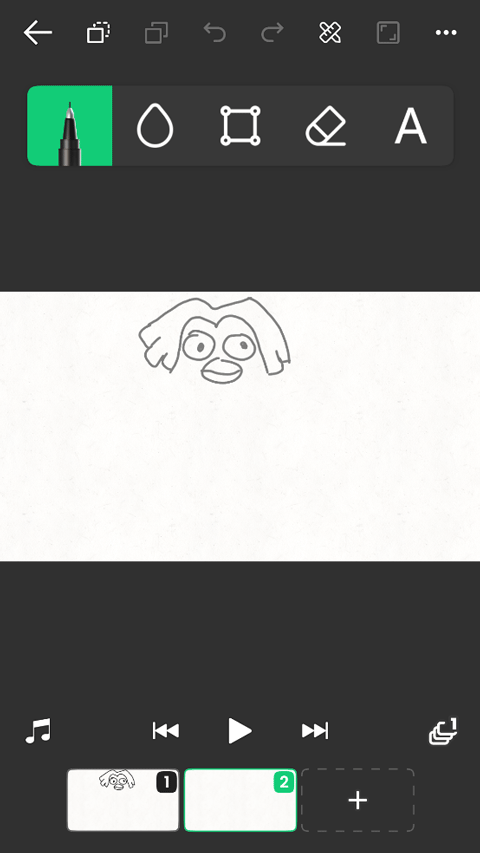 3、在首帧绘制初始画面,随后添加新帧绘制变化内容,点击底部播放按钮即可预览动画效果;