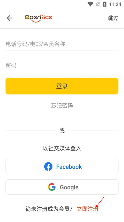 2、进入登录界面后,滑动至底部,点击“立即注册”。
