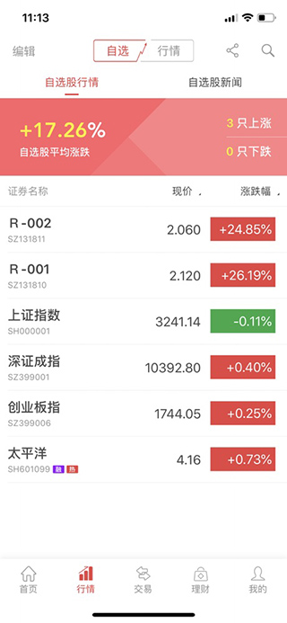 2、进入“行情”板块,可查看自选股列表及其关联新闻动态,实时掌握持仓或关注股票的最新走向。