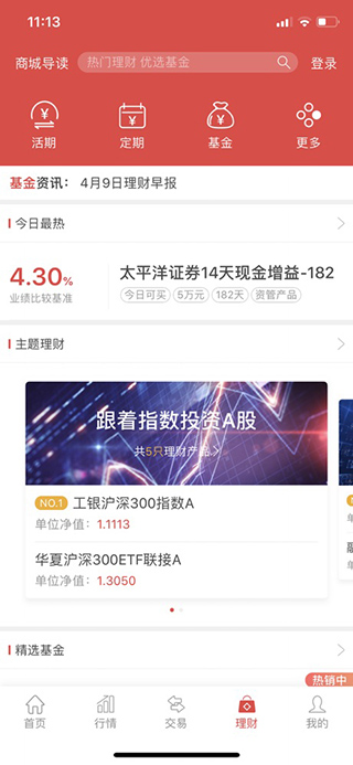 3、“理财”专区汇聚基金、定期理财、活期产品等多样化选择,灵活配置资产,轻松开启财富管理。