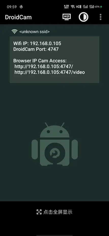 1. 在浏览器中最大化 DroidCam 的预览窗口。