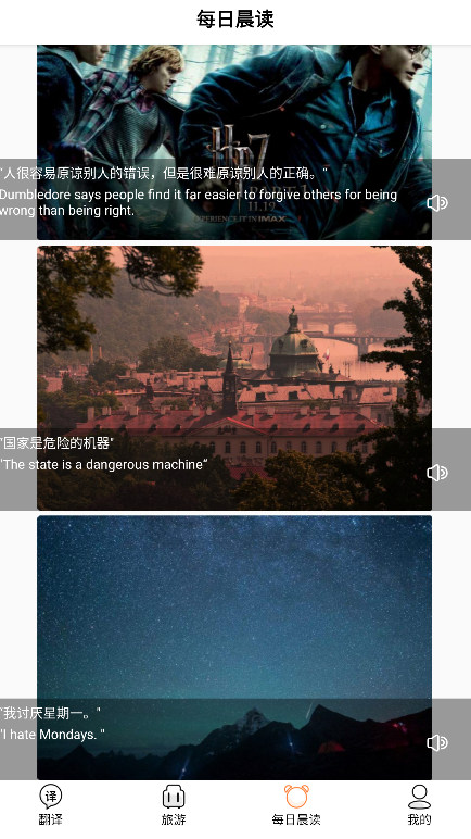 4、“每日晨读”栏目每日更新英语谚语与经典短句,帮助用户在清晨开启高效语言学习之旅。