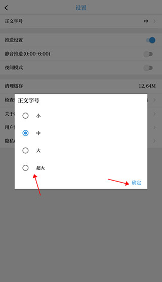 4、勾选您偏好的字号大小,点击【确定】即可生效