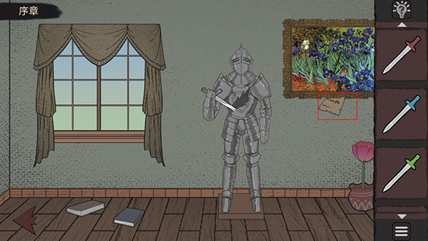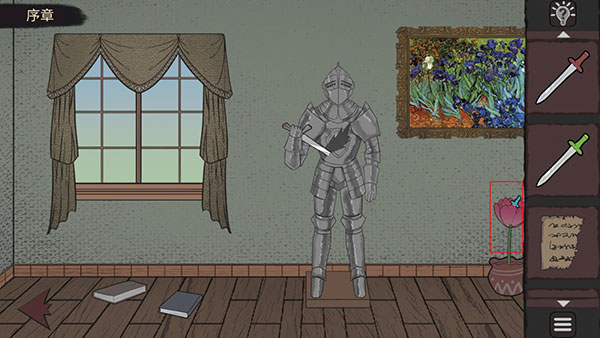 1、在初始场景中,打开抽屉获取红色手柄剑。