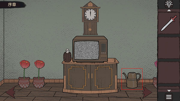 2、切换至右侧场景,拾取地上的浇花壶。