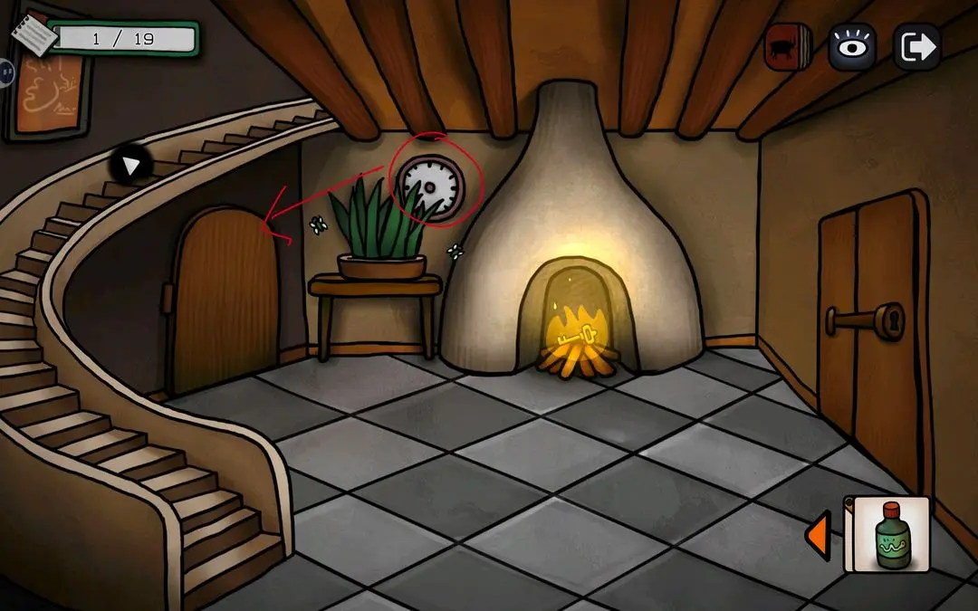 后续流程包括:调节时钟至9:55打开浴室门,取得玻璃杯;用空牛奶壶浇灭壁炉获取钥匙;为浴缸注入蓝色(需结合蓝颜料);完成日历撕页、点击蛾子等互动,逐步解锁更多区域与剧情。