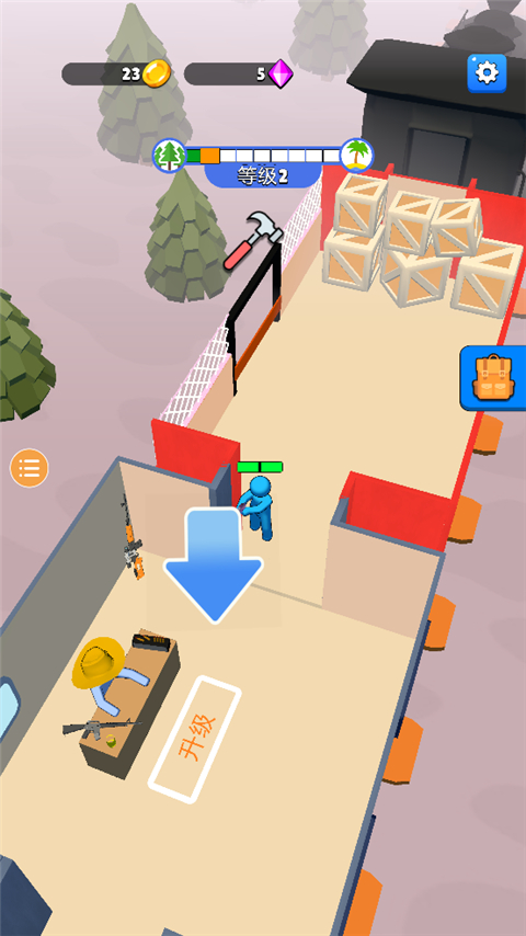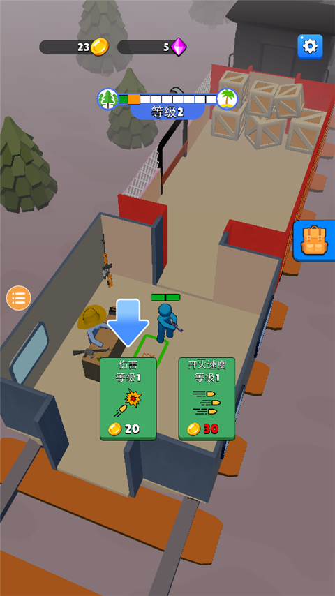 解锁车厢后,进入指定区域进行功能升级,如武器强化、防御工事建造等。