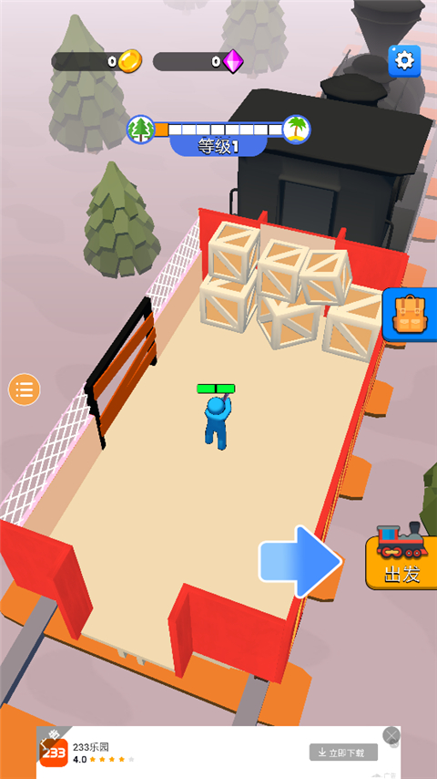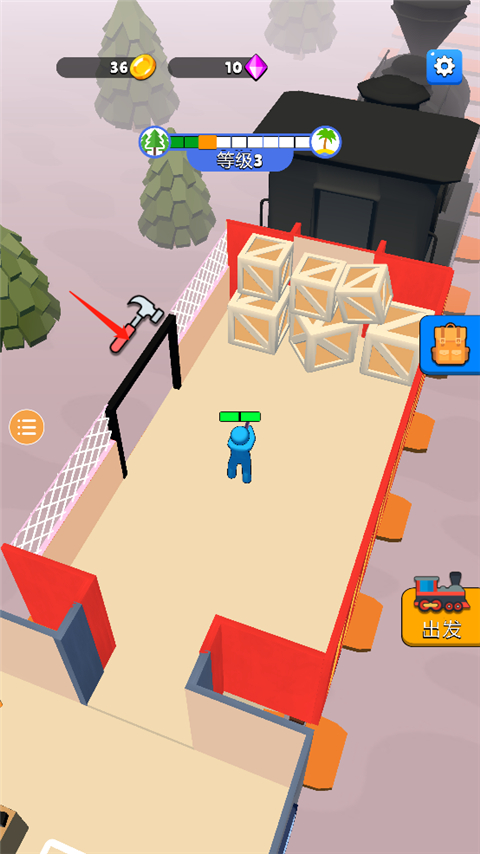 随着金币积累,按提示向前移动角色,花费资源解锁新车厢,拓展列车空间。