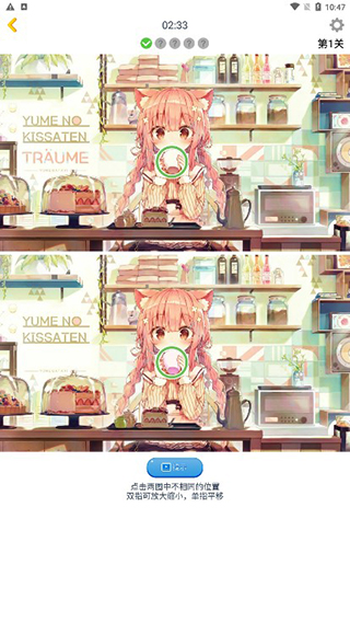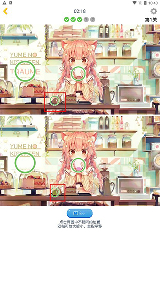 《漫芽糖找茬》延续了广受欢迎的经典“找不同”规则:每关呈现两张高度相似的图片,玩家需在倒计时内精准找出全部10处差异。操作简单直观——只需用手指点击不同之处即可完成标记。随着关卡推进,差异点将愈发隐蔽,节奏更紧张,带来既烧脑又上瘾的沉浸式体验。