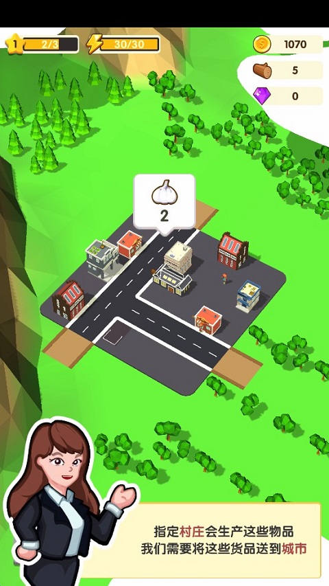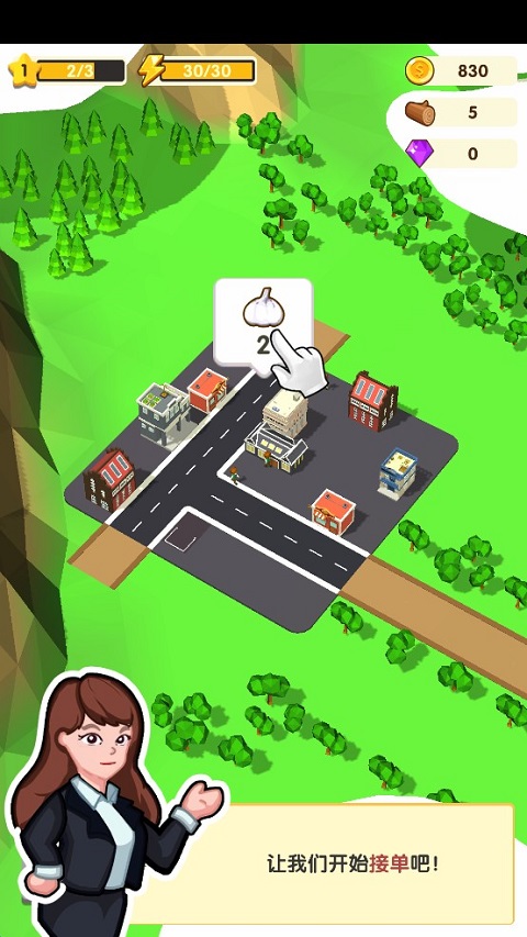 2. **接取订单**:道路连通后,点击城市区域上方的订单气泡,系统将自动分配可用运输车辆。