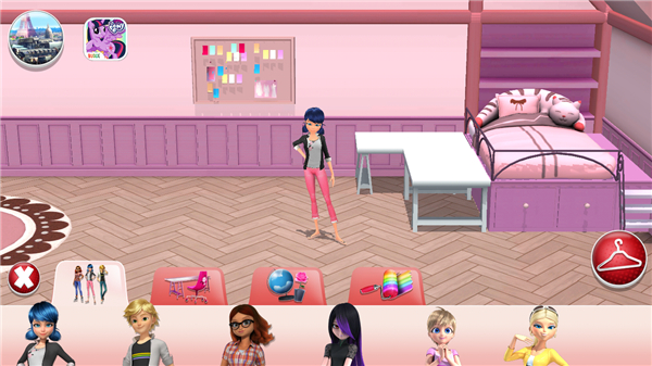 8. 在衣架界面自由搭配服装,打造理想造型;点击书座、地球仪等家具图标,即可对房间进行个性化布置。