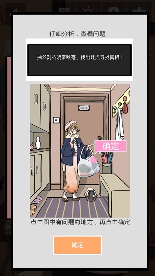 游戏的核心玩法围绕“找异常”展开。你需要在静态画面中仔细观察,识别不合常理的细节——比如口红被蹭掉的痕迹、手提袋里的狗粮、同款便当盒,甚至空调温度与季节的矛盾。操作简单直观:点击可疑之处,确认后即可推进剧情。但真相往往藏在最不起眼的角落,唯有抽丝剥茧、明察秋毫,才能识破她的“套路”。