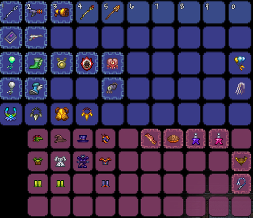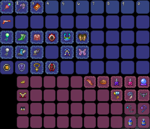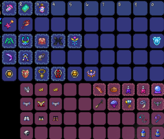 机械三王后:彩虹法杖(追踪+穿透)成为核心输出,搭配神圣套(神圣闪避大幅提升容错率),移动力推荐喷气背包或蝴蝶翅膀。