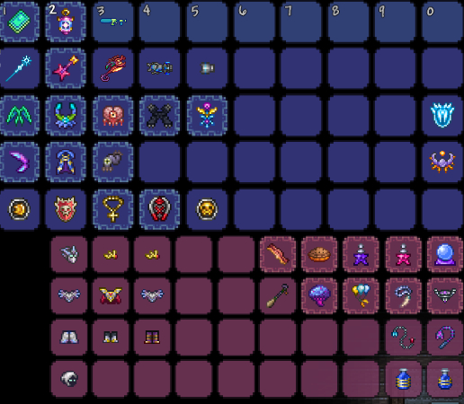 后期(猪鲨、月总):利刃台风、夜辉、泡泡枪构成顶级输出组合;星云烈焰则是月球领主战外圈最优解。注意月总战禁吸血,优先使用幽灵面具+神圣套,避免依赖幽魂兜帽回复。