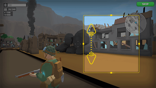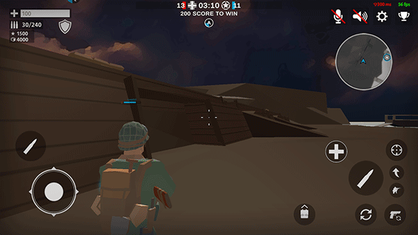 2、左侧虚拟摇杆控制士兵移动,灵活走位是生存的关键。