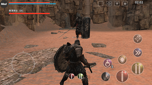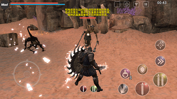 2、进入战斗界面,左侧虚拟摇杆控制角色移动,右侧按钮负责普通攻击、技能释放与闪避操作。